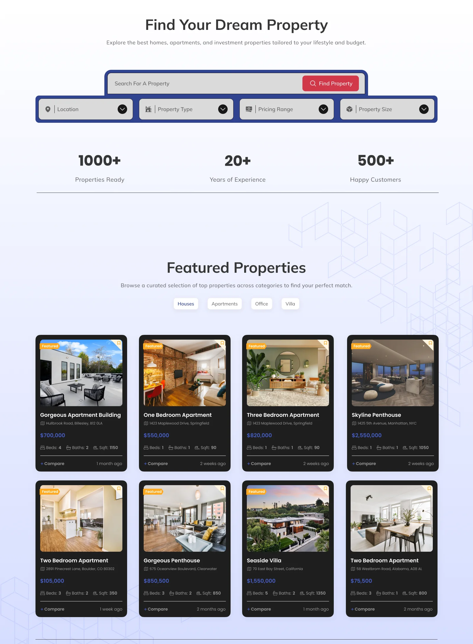 A clean, intuitive design that makes property search effortless—helping users filter, explore, and find their ideal home with ease.