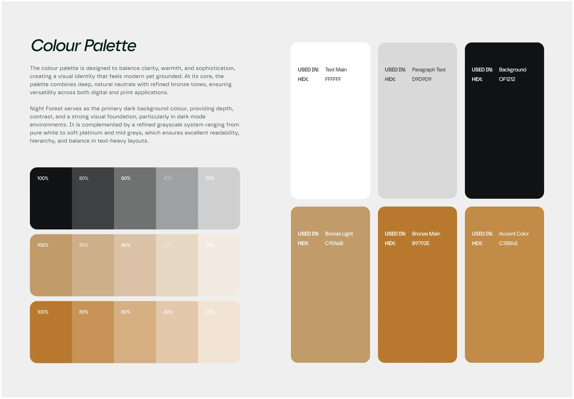 - Full brand identity including a refined color palette and visual system.